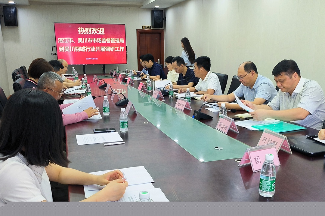 4月(yuè)12日(rì),湛江市(s↔"αhì)質量發展與認證認可(kě)監督管理(lǐ)科(∏↔δkē)科(kē)長(cháng)譚挺帶隊,采取實地(dì)調研♦☆♣和(hé)召開(kāi)座談會(huì)的(de)形式,莅臨鴻基羽絨開↑α(kāi)展制(zhì)造業(yè)重點産業(yè)鏈質量提升行(xíng★✘$)動。湛江市(shì)質量發展與認證認可(≈β✘εkě)監督管理(lǐ)科(kē)副科(kē)長(cháng)吳潔、副科(k∏ē)長(cháng)趙永智,以及吳川市(shì)編碼所主任付光(guāng)中、市(shì)質計(★↕≈jì)所主任謝(xiè)勁濤和(hé)吳川市(shì)副局長(chá ng)龐超明(míng)随行(xíng)。譚挺ε→÷×科(kē)長(cháng)一(yī)行(xíng)在鴻基羽絨董事(shì)長(cháng)淩 ..$